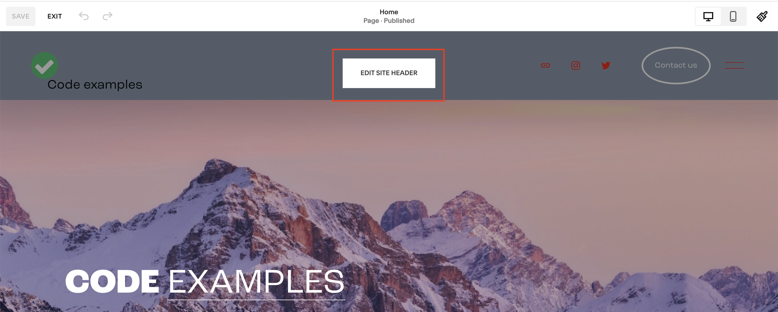 Within your edit dashboard select Edit Site Header and click the mobile view option from the panel that appears.