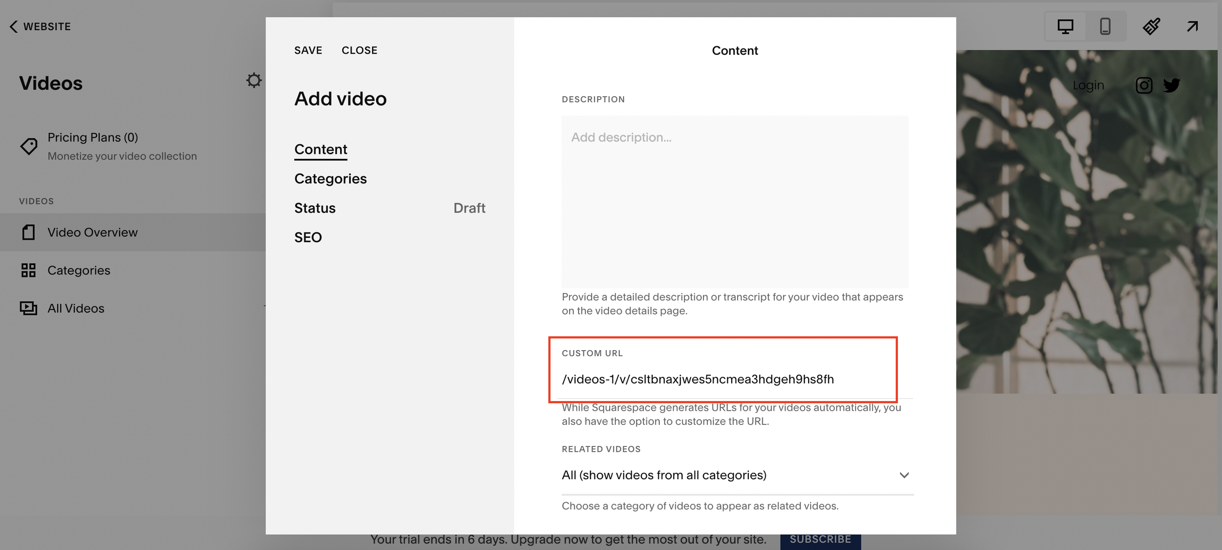 You can also give your video a custom URL and select the related videos that you want to display on the page.