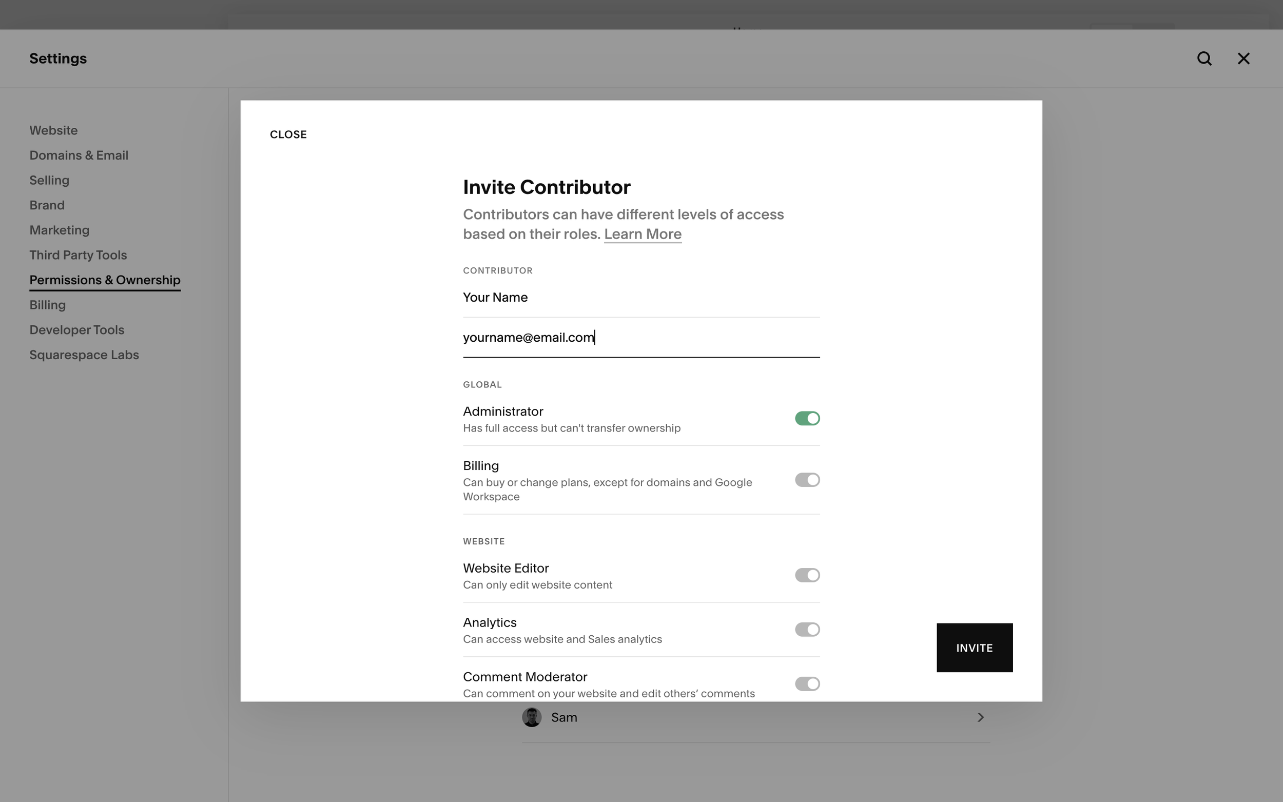 Once you’ve filled in the fields, hit invite and that will send a contributor invite to the email you inputted.