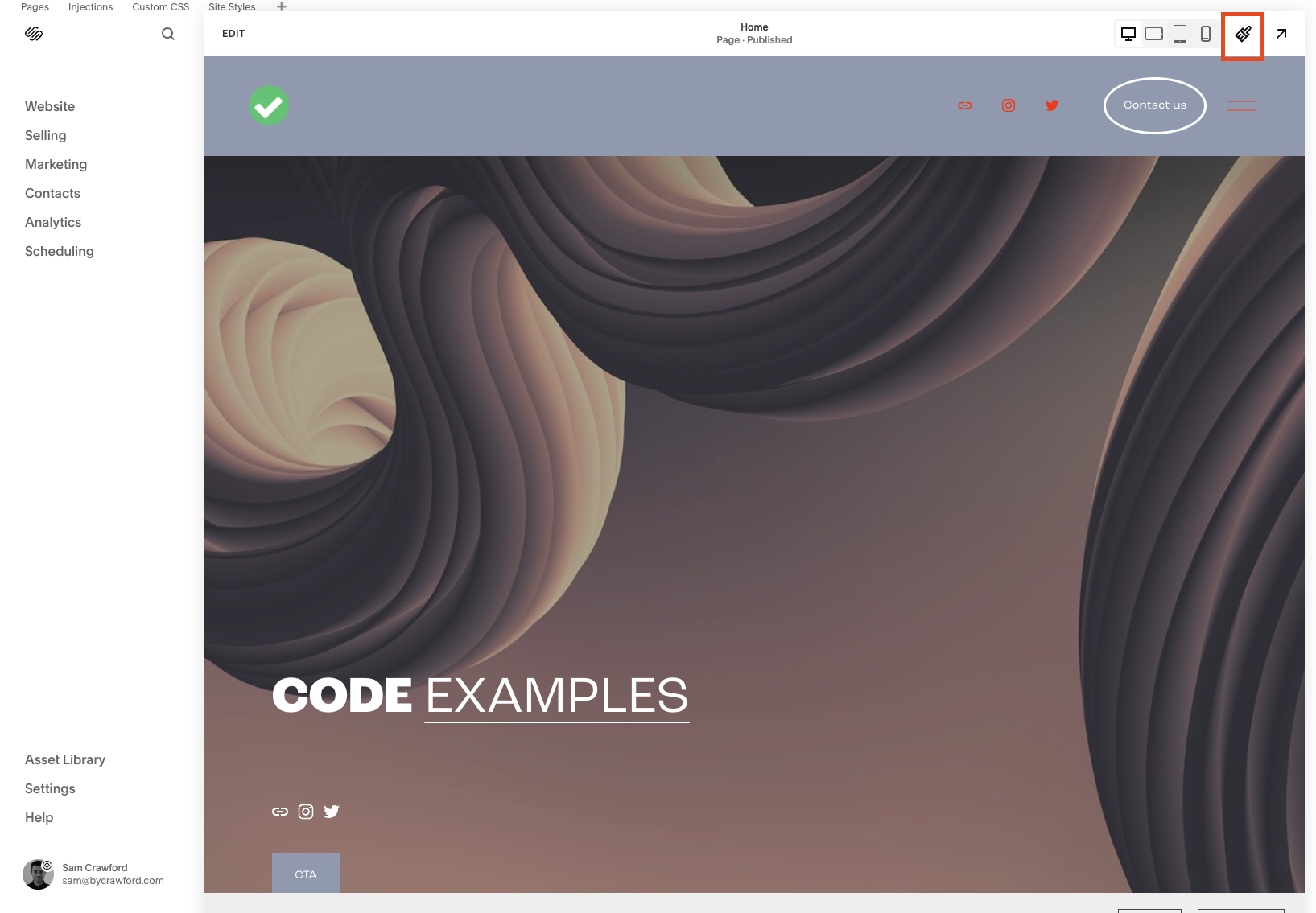 Within your main edit dashboard hit the paintbrush icon in the top right hand corner to head to Site Styles.