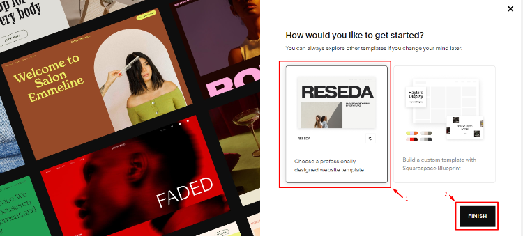 The next screen will prompt you to either choose an existing template or create your own. Select the first option, then click the “FINISH” button.