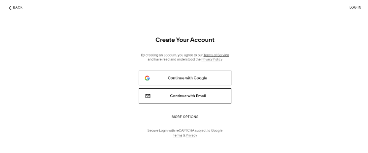 The next screen will prompt you to create a Squarespace account. You can either continue with your Google account or sign up with an email address.