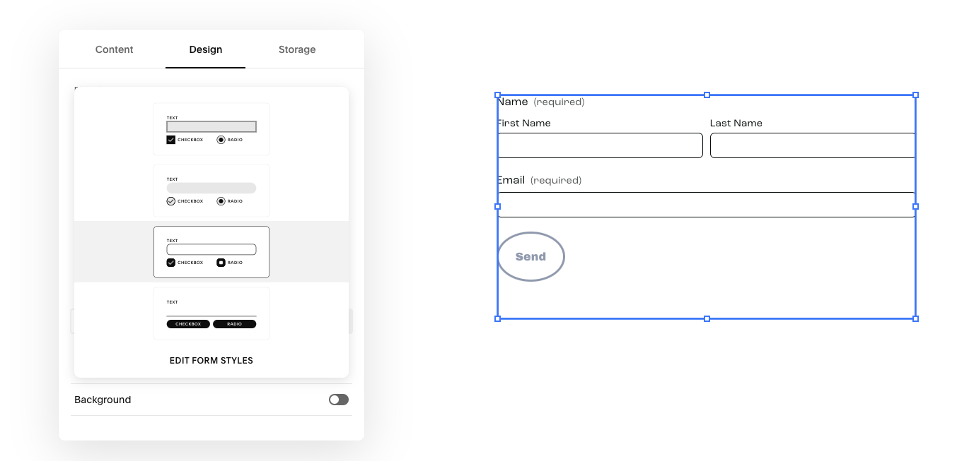Here you’ll see there’s a new section called Form Styles. You can click the drop down menu and select from four different design packs including underlines and borders.
