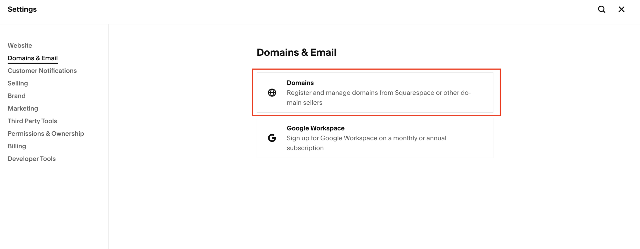 Head to Settings > Domains & Email > Domains and click the Get a Domain button.