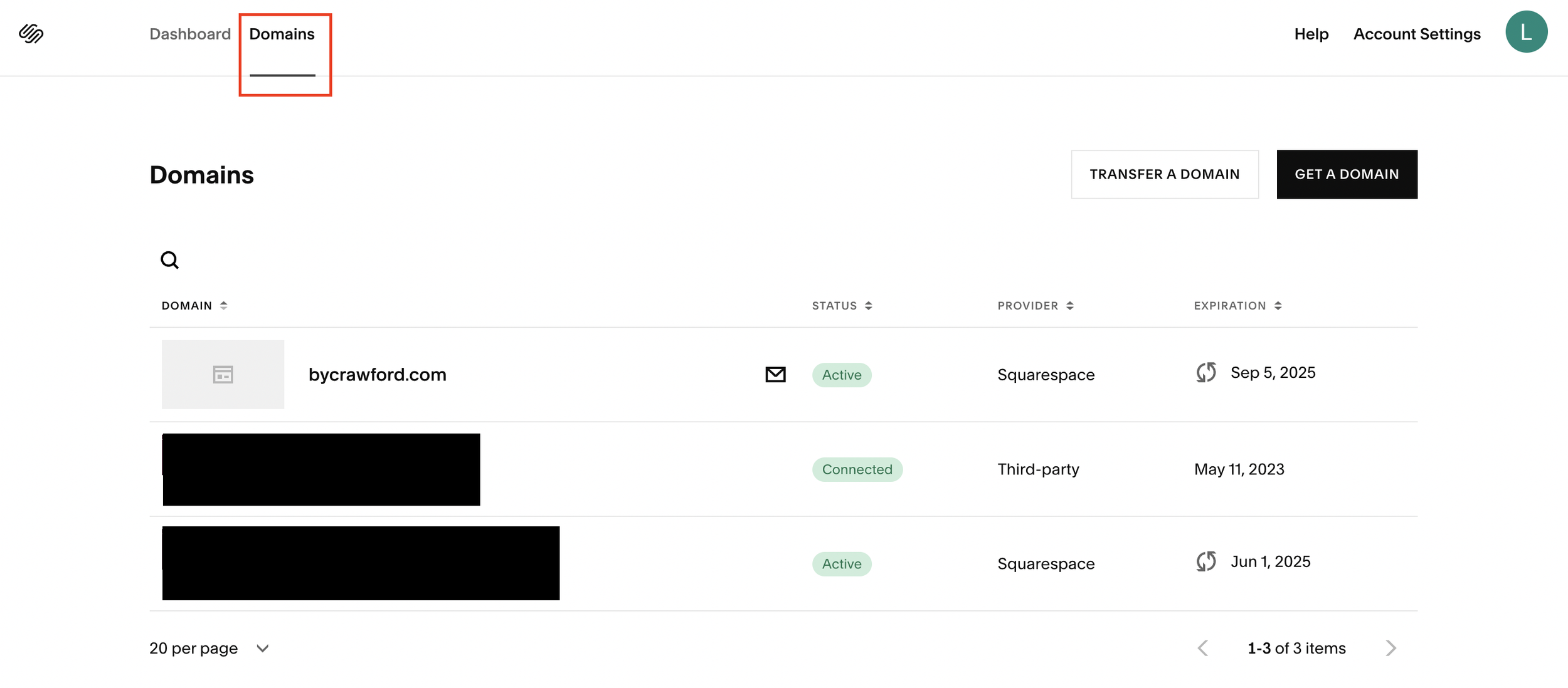 To check any of your domains, simply head to your main account dashboard and select the domains tab.