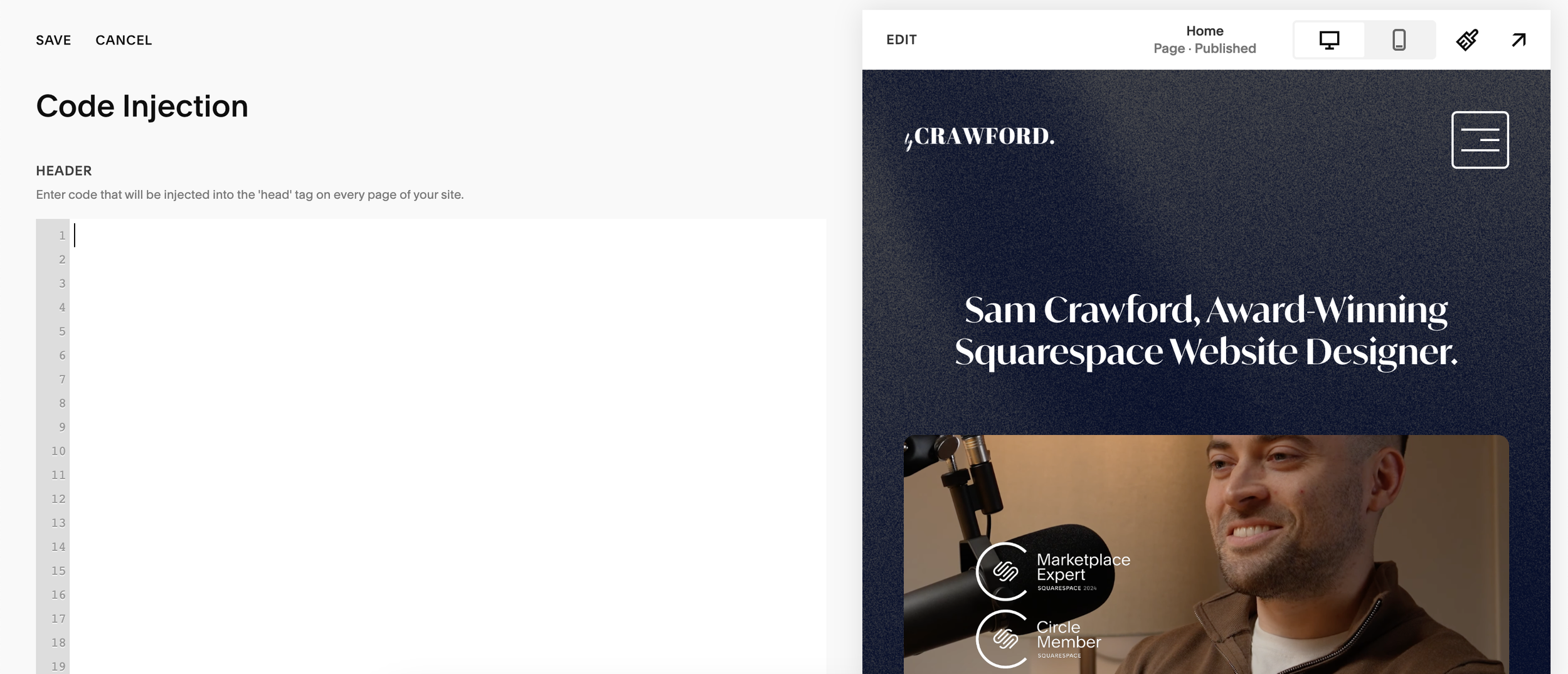 As a Squarespace Expert, Enterprise Partner, Circle Member, and community speaker, Sam is known for pushing the platform’s limits. With 200+ reviews, clients highlight by Crawford’s clarity, precision, and real-world results like higher rankings and stronger lead generation.